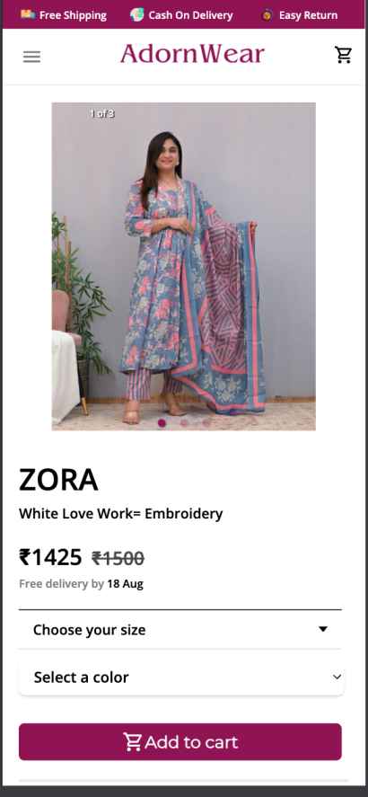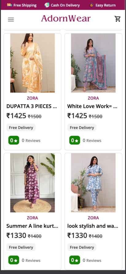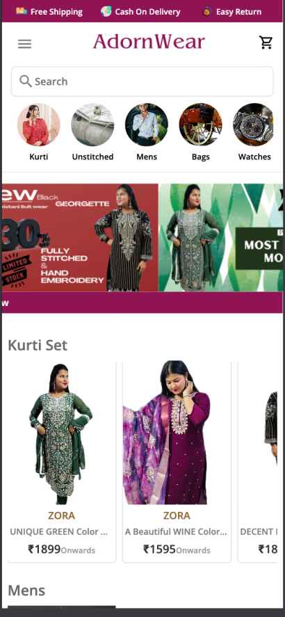 AdornWear is a sleek e-commerce platform for premium fashion. It offers intuitive browsing, high-quality product displays, and secure checkout. The responsive design delivers a seamless shopping experience on all devices.